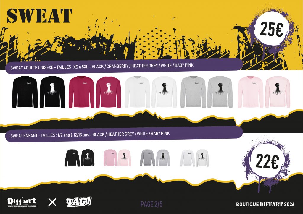 Production lancée sous réserve d’un minimum de commandes. Articles non échangeables (précommande). Essayages possibles à Diff’art pendant les heures de bureau.